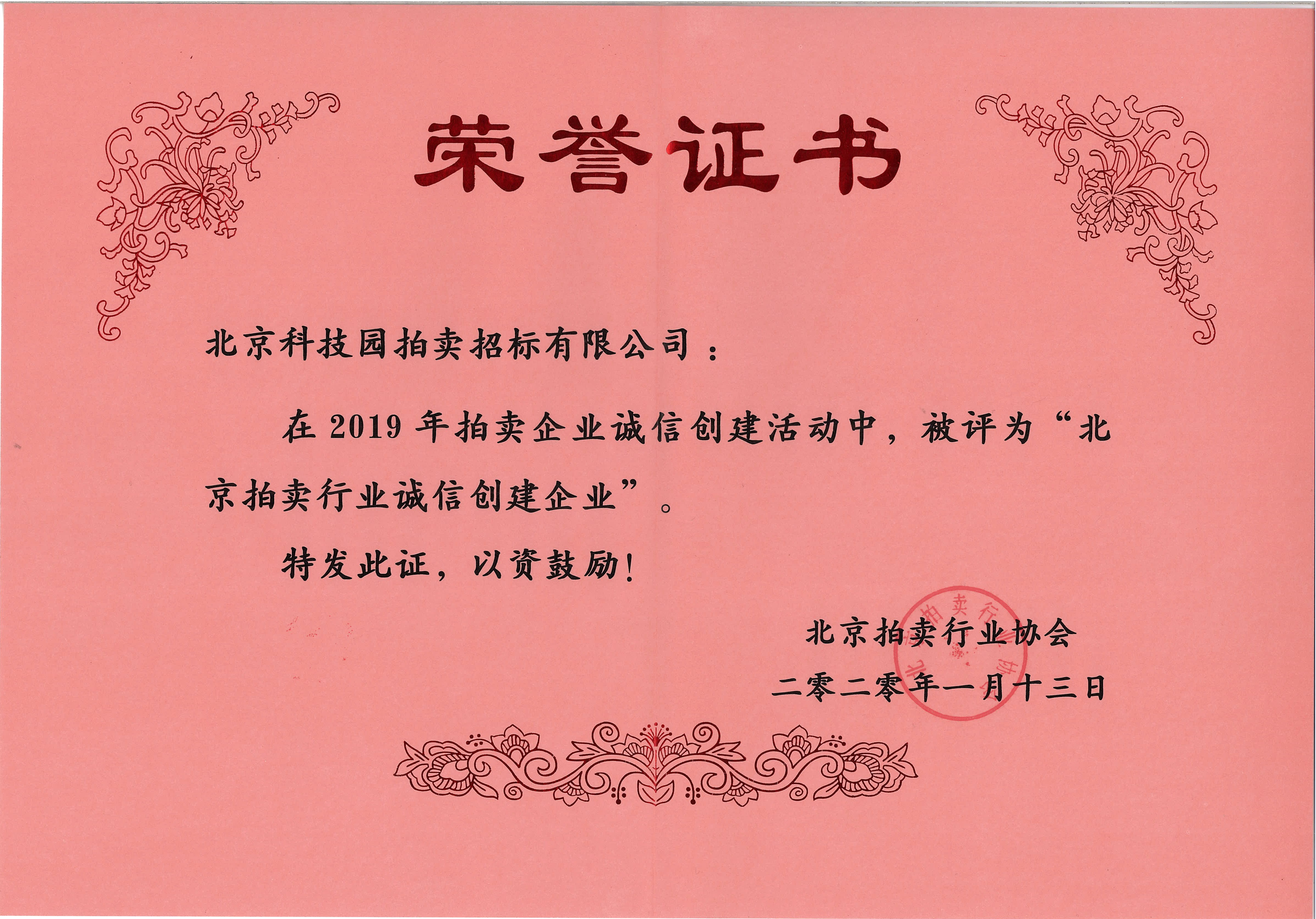 2019北京拍賣行業(yè)誠信創(chuàng)建企業(yè)