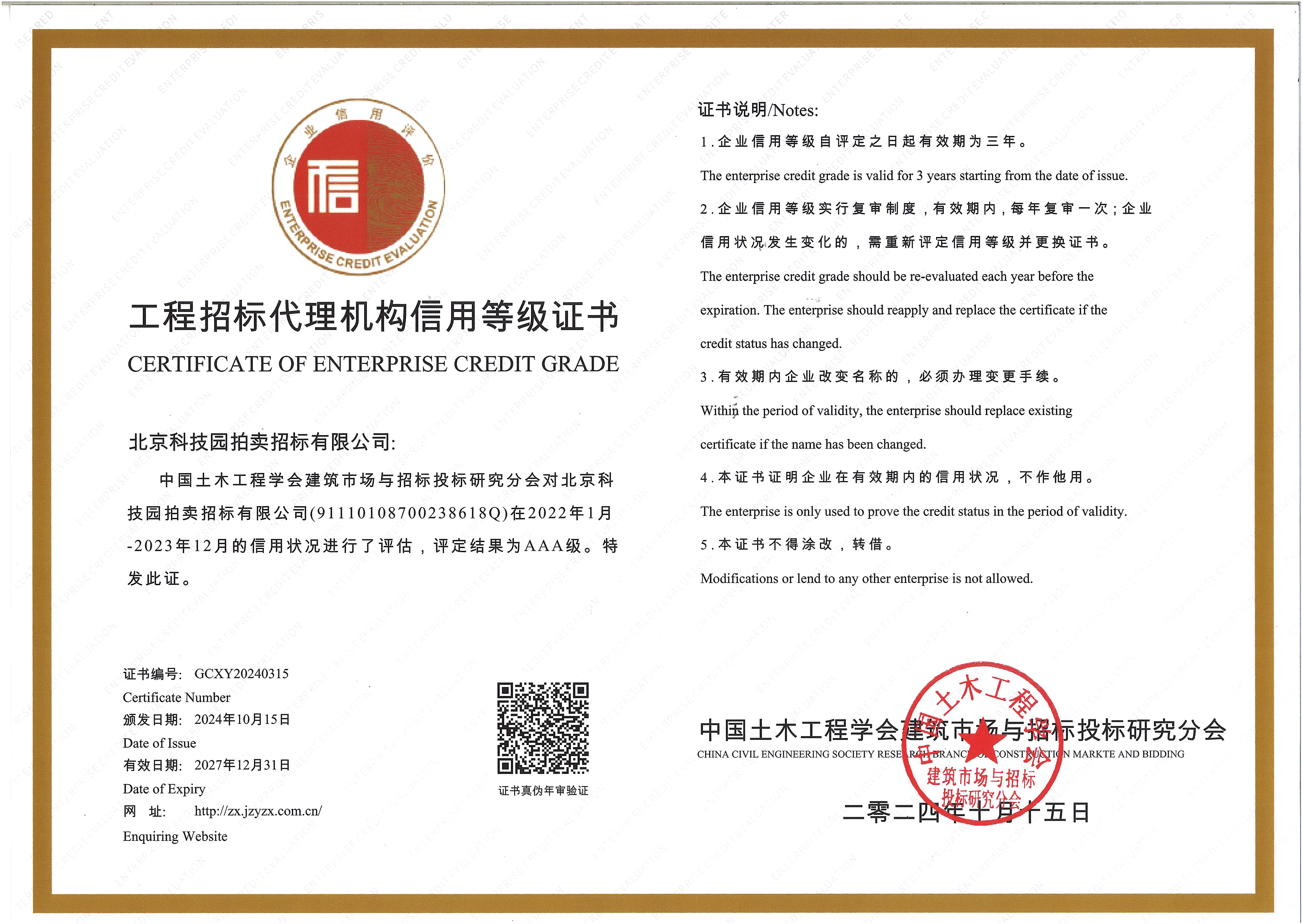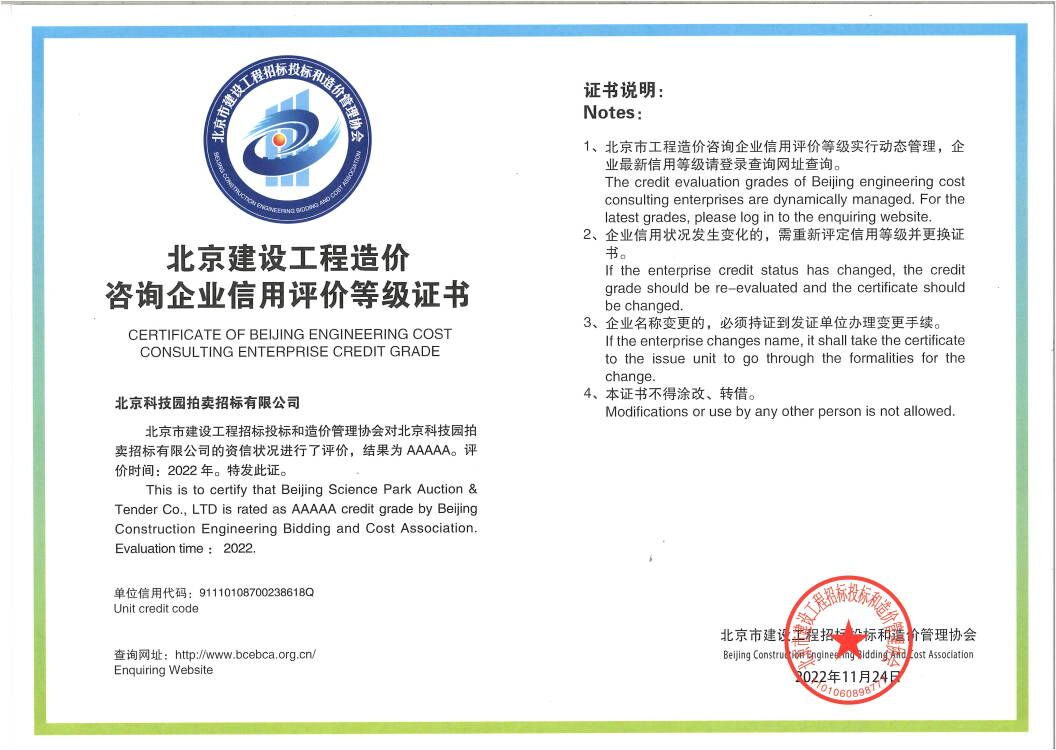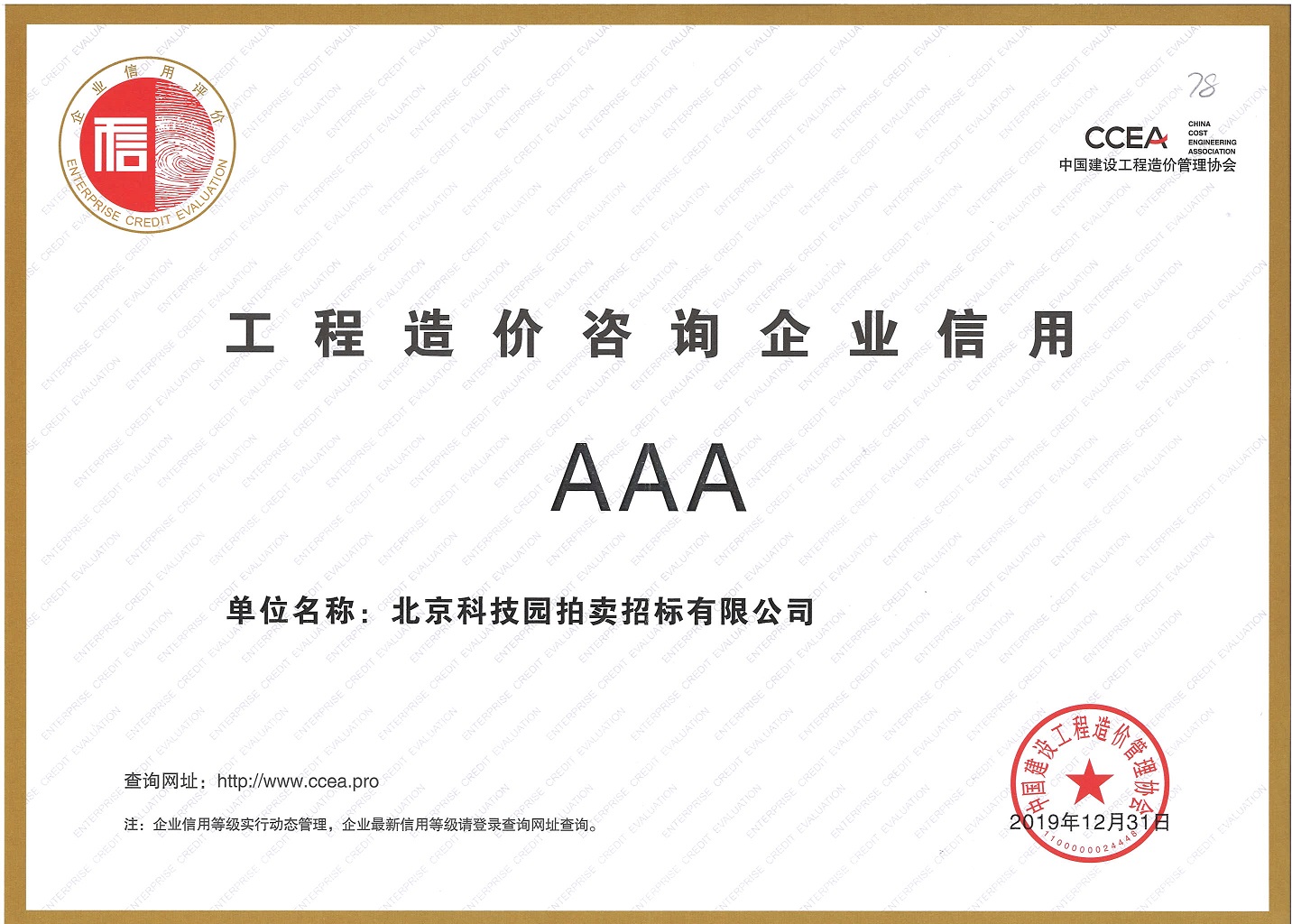 工程造價(jià)咨詢(xún)企業(yè)AAA信用證書(shū)