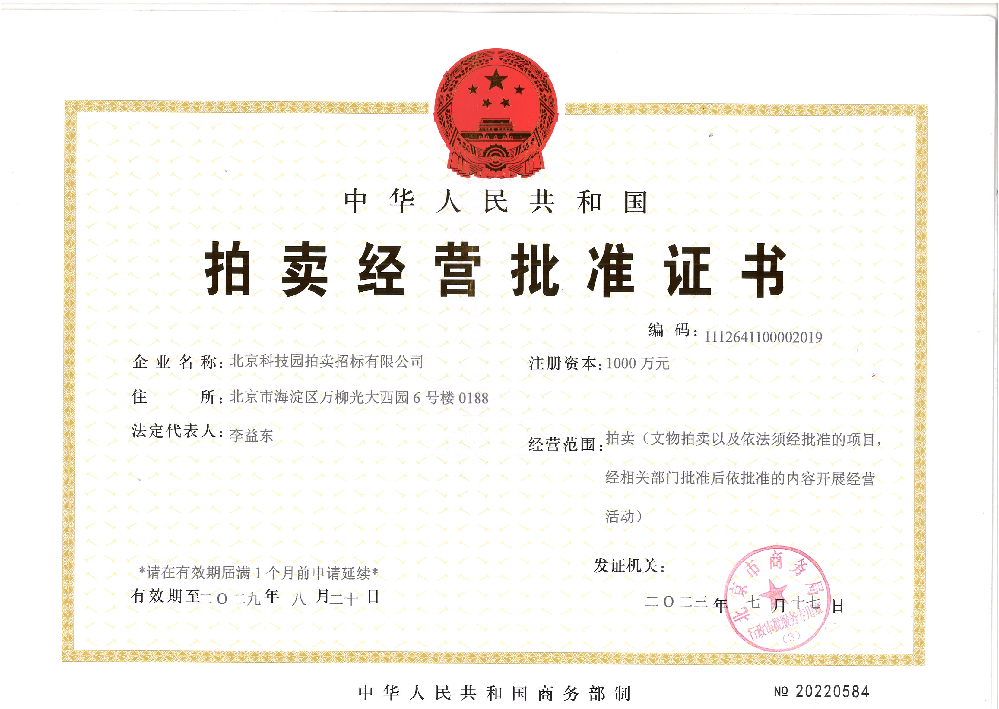 拍賣(mài)經(jīng)營(yíng)批準(zhǔn)證書(shū)
