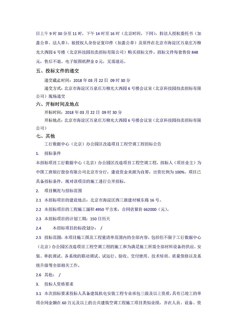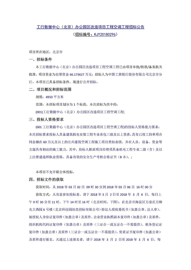 工行數(shù)據(jù)中心(北京)辦公園區(qū)改造項目工程空調(diào)工程招標(biāo)公告