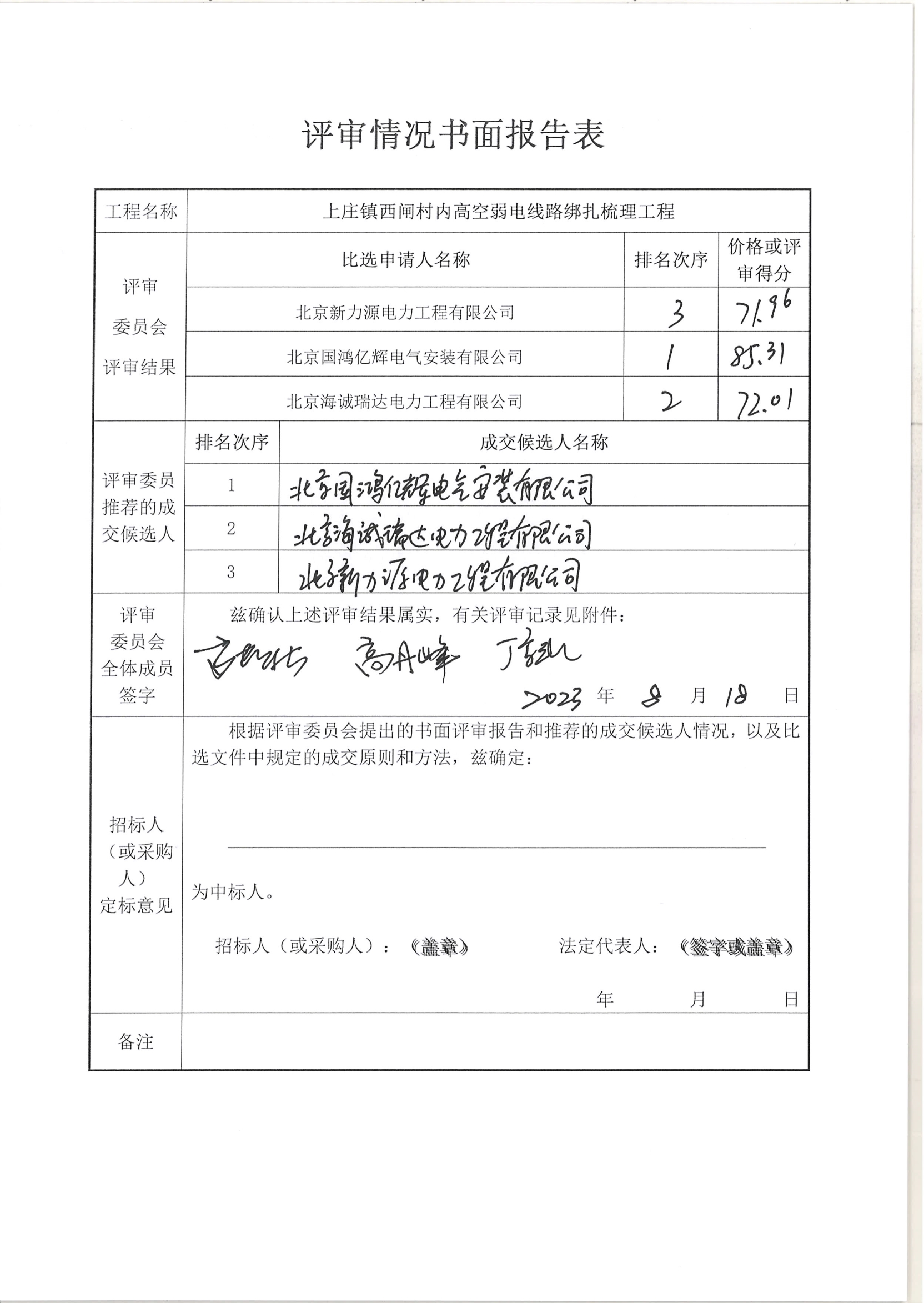 中選單位:北京國(guó)鴻億輝電氣安裝有限公司