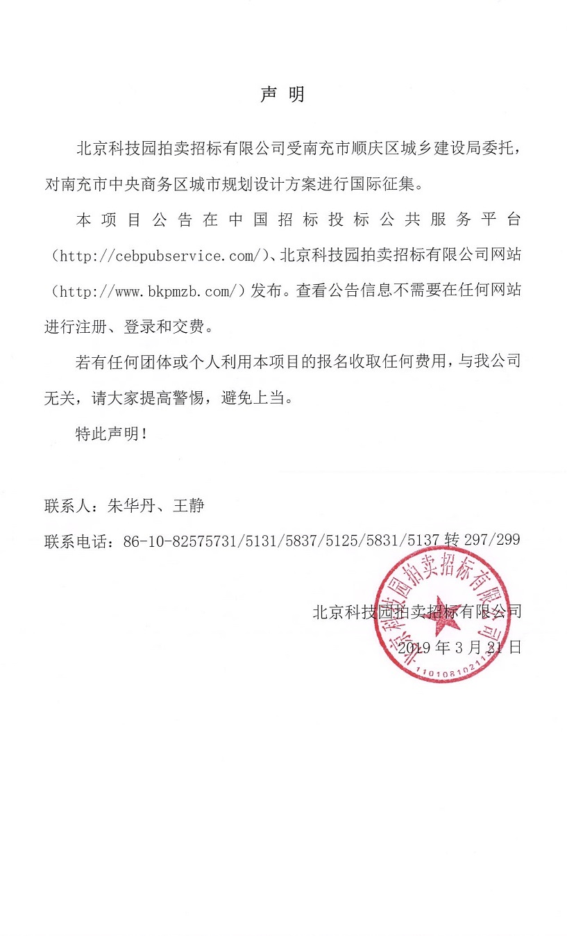 關(guān)于南充市中央商務(wù)區(qū)城市規(guī)劃設(shè)計(jì)方案國(guó)際征集的聲明