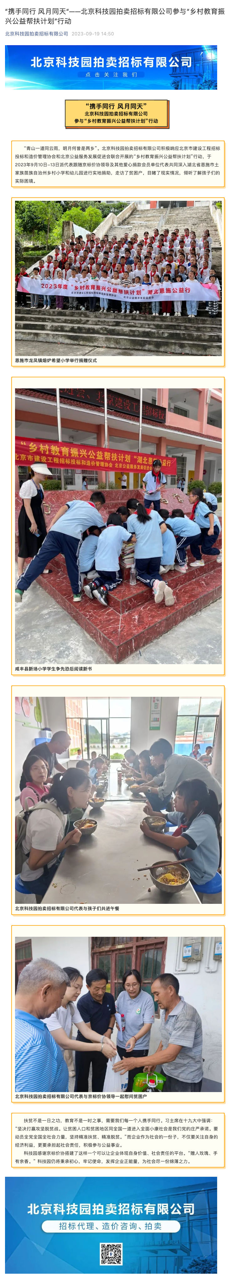 “攜手同行 風月同天“——北京科技園拍賣招標有限公司參與 “鄉(xiāng)村教育振興公益幫扶計劃”行動