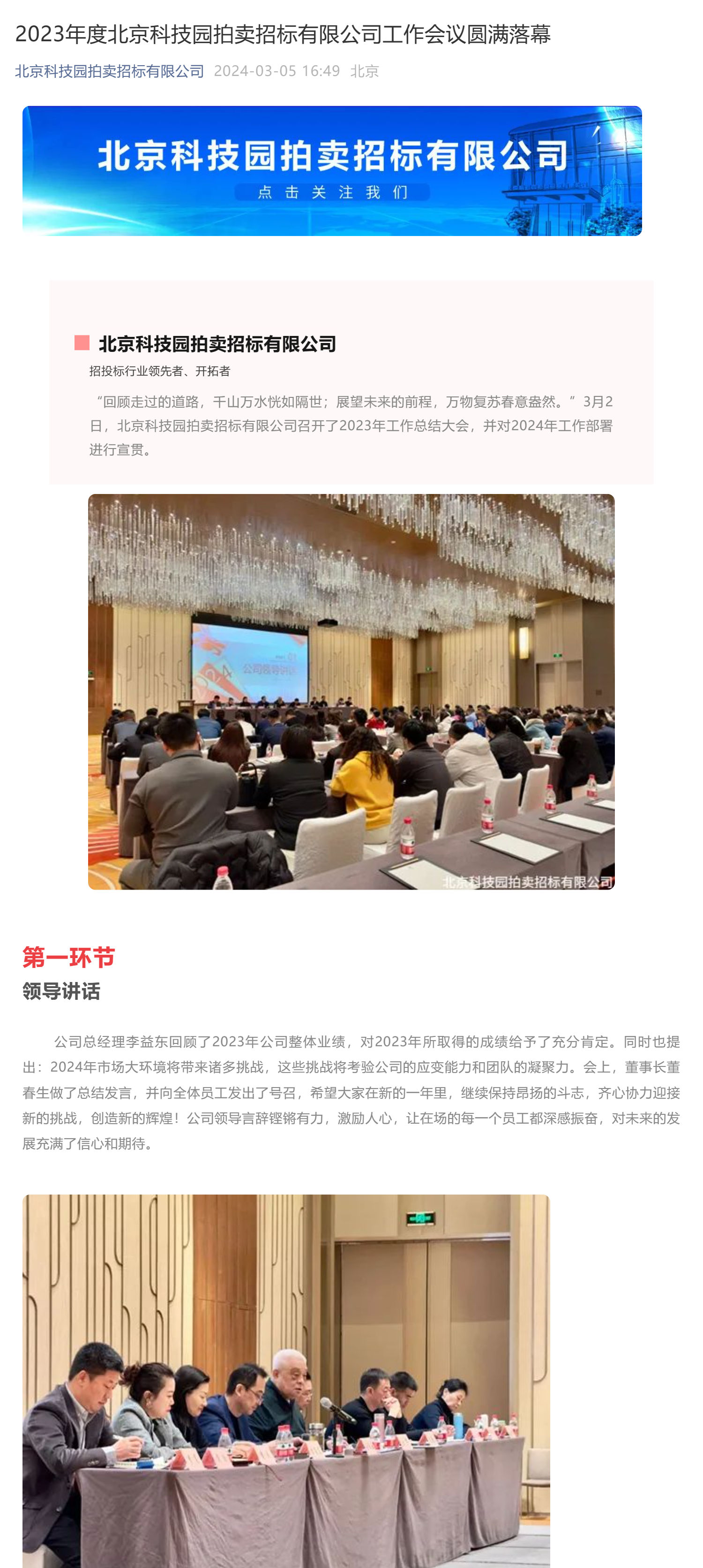 2023年度北京科技園拍賣招標(biāo)有限公司工作會議圓滿落幕